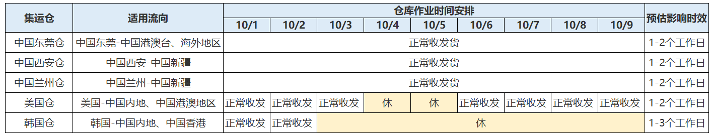 假期期间,各集运仓作业安排有相应调整,相关流向的包裹整体送达时间可能会出现一定程度的延迟,具体如下: